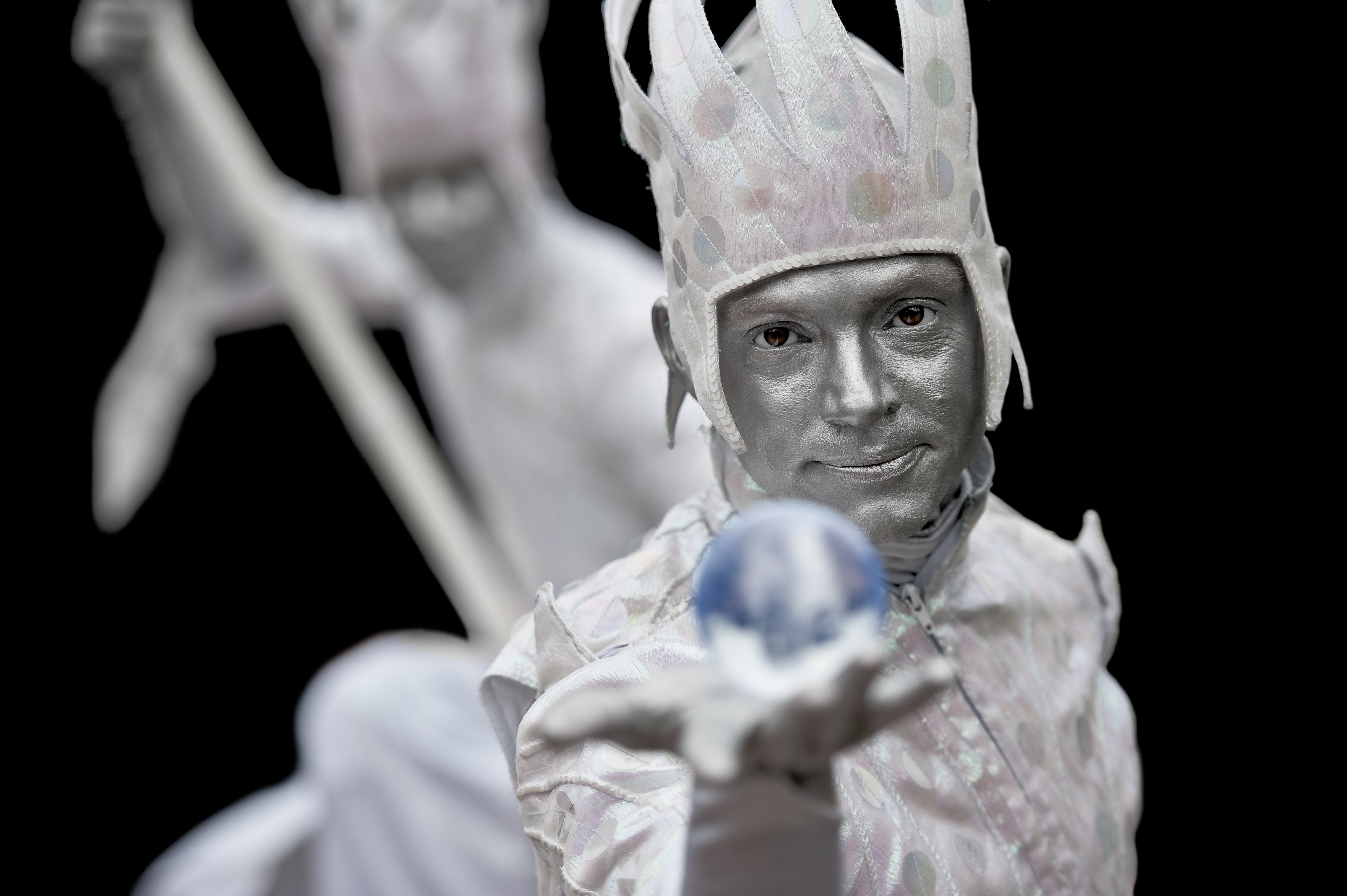 Calvos appear as either ground level crystal ball jugglers or stilt characters – or both – in the same booking…