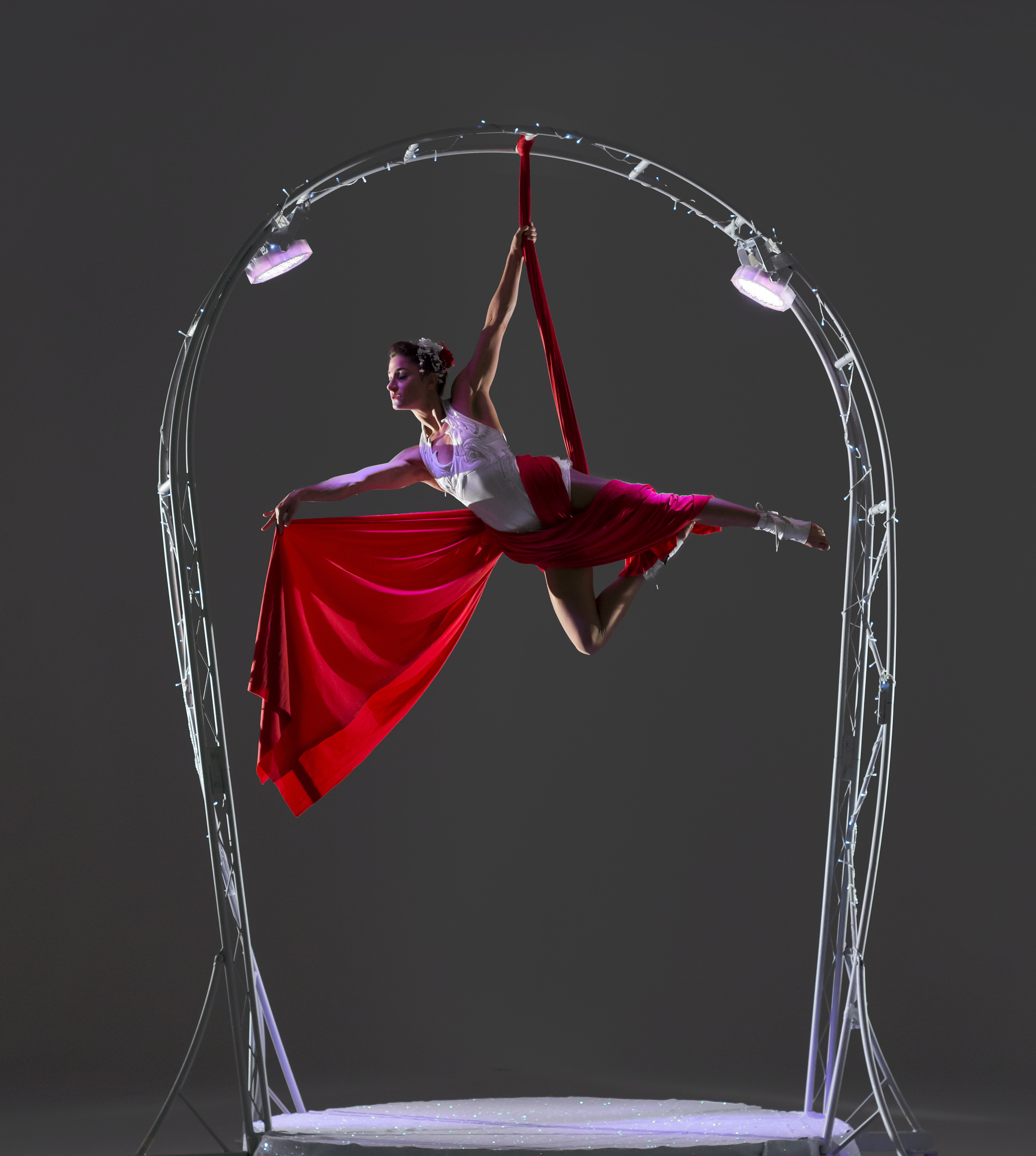 This is like nothing your guests have ever seen before – a revolving aerial installation! And you don’t need to have your own rigging points in the ceiling as this installation is all self-contained!