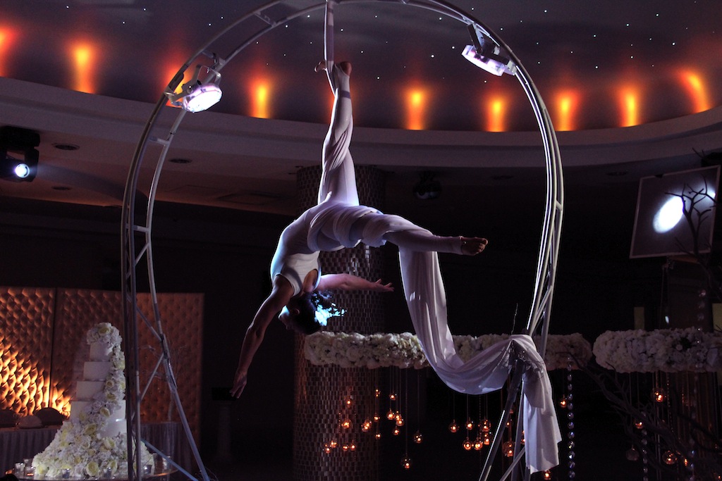 Stun your guests with this highly visual treat! Two multi-skilled entertainers perform amazing acrobatics and aerial on this free-standing rig. All whilst the entire rig rotates!